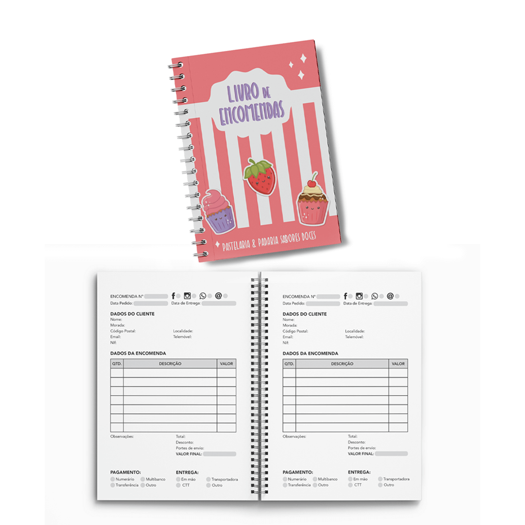 Caderno de encomendas com personalização na capa